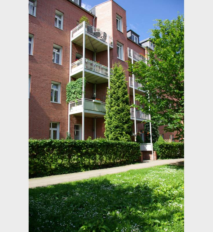 Kernsaniertes Gründerzeithaus mit wunderschöner Klinkerfassade in geschlossener Karreebebauung. Idyllischer grüner Innenhof mit Bachlauf und Teich. Nur wenige Schritte entfernt liegt ein schöner Kinderspielplatz mit Spielburg, Sandfläche und Wipptieren.